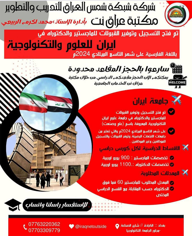 عنوان الشركة كرادة شارع الصناعة مجاور الجامعة التكنولوجية